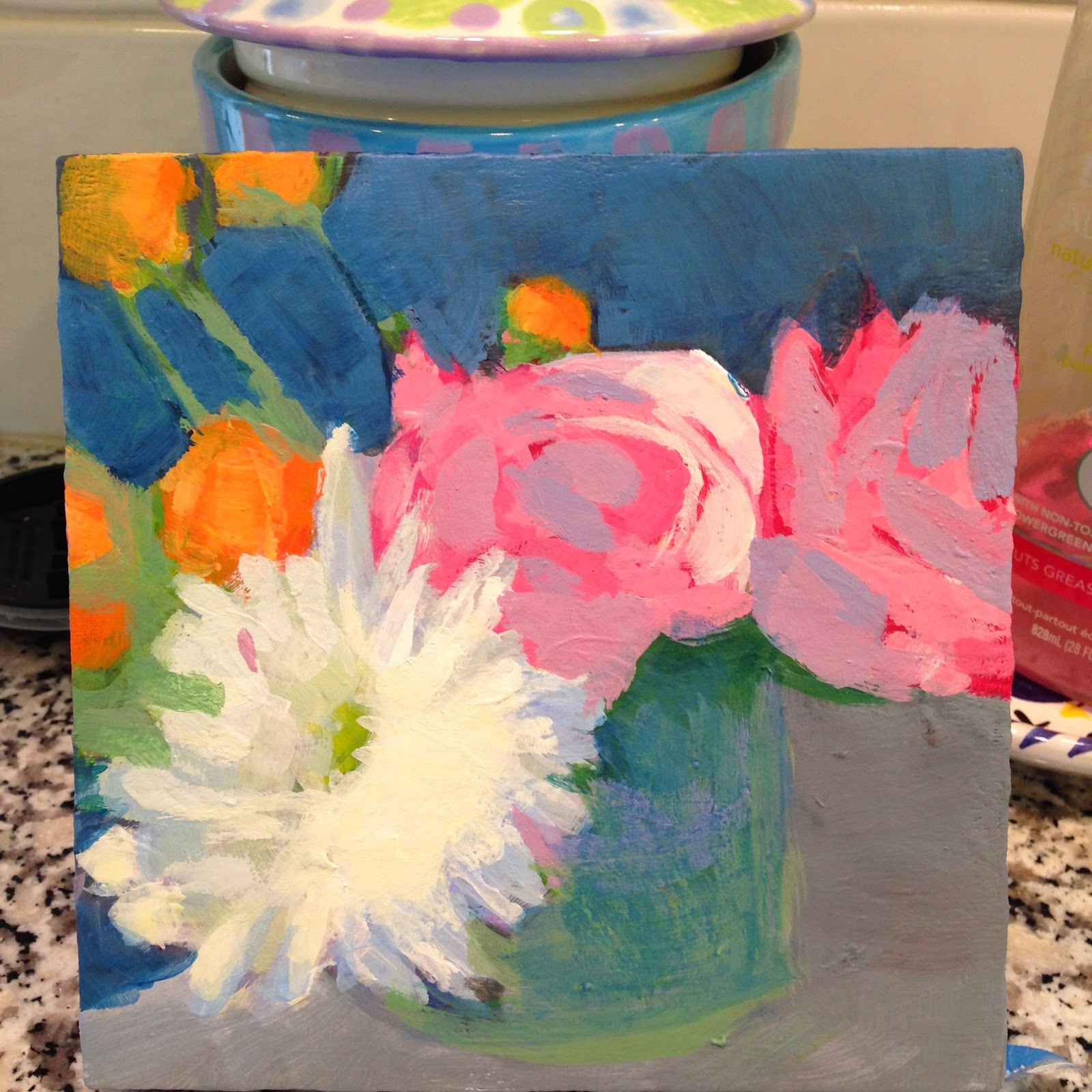 | Still working on this little floral 6x6 painting...so close...but not done yet. |